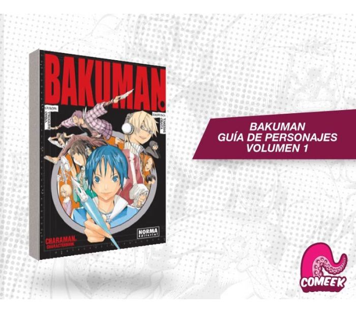 Bakuman Guía de Personajes Volumen 1, publicado por la editorial Norma en español, edición en pasta blanda, 228 páginas a blanco y negro + 16 páginas a color.