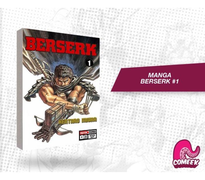 Un hombre completamente vestido de negro que se hace llamar Guts, que tiene una mano artificial de hierro duro y que carga una espada gigantesca que supera su estatura. En el lugar al cual se dirige llueve sangre y hay montañas de cadáveres apilados. Puck, un elfo que se mantiene a su lado desde que Guts le salvó la vida, quedó impresionado por su increíble fuerza, aunque a la vez le causa temor lo violento que es el mundo en el que él vive. Una horda de espíritus malignos que obstaculizan su camino. ¿acaso la marca que tiene en el cuello lo incita a buscar la venganza...? No te pierdas el primer tomo de esta increíble saga.