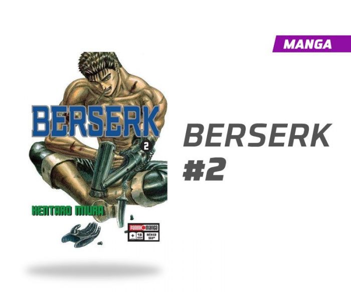 Manga Berserk número 2, publicado por la editorial Panini México en español, edición en pasta blanda, 216 páginas a blanco y negro.