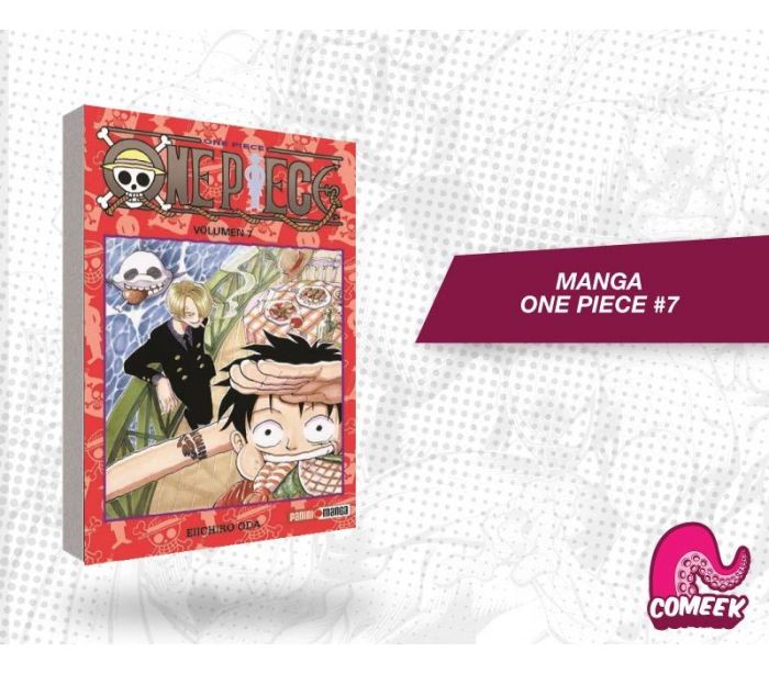 Manga One Piece número 7, publicado por la editorial Panini México en español, edición en pasta blanda, 216 páginas a blanco y negro.