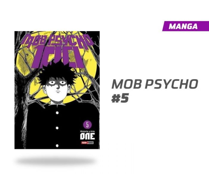 Manga Mob Psycho 100 número 5, publicado por la editorial Panini México en español, edición en pasta blanda, 200 páginas a blanco y negro.