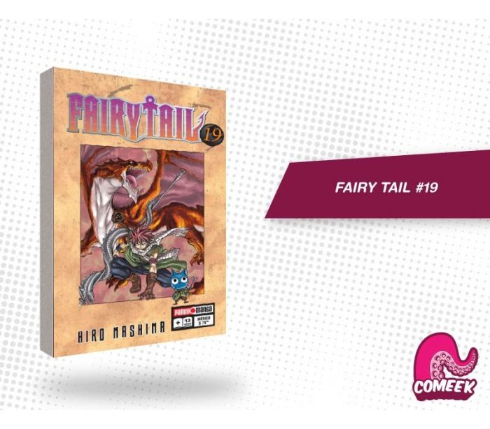 Manga Fairy Tail número 19, publicado por la editorial Panini México en español, edición en pasta blanda, 216 páginas a blanco y negro.