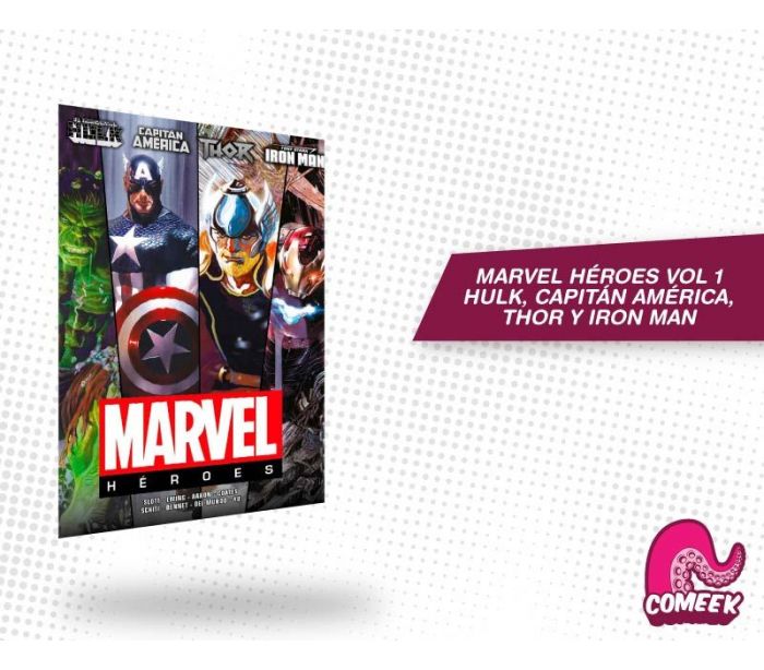 Comic Marvel Héroes Vol 1, impreso en español por la editorial Ovnipress de Argentina, edición en pasta blanda, 256 páginas a color. Nueva colección que recopila Fresh Start de 4 personajes: Thor, Iron man, Capitán América y Hulk.