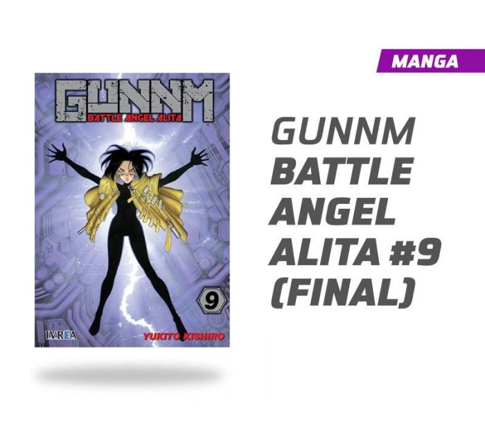 Manga Gunnm Battle Angel Alita número 9 de 9, publicado por la editorial Ivrea Argentina en español, edición en pasta blanda, 200 páginas a blanco y negro.