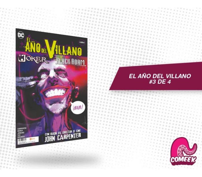 ¡El Año del Villano! ¡Es el especial del Joker que llevas esperando durante meses! John Carpenter, el aclamado director de Halloween (1978), La cosa (1982) o Golpe en la pequeña China (1986) nos cuenta qué hace un Príncipe Payaso del Crimen cuando todo el mundo ha aceptado que el mal es el único camino. ¡Con la colaboración estelar de Anthony Burch (saga Borderlands) y Philip Tan (El desafío de Kamandi)! Este número se completa con una historia protagonizada por otro de los grandes antagonistas del Universo DC, Black Adam.