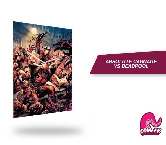 Comic Absolute Carnage vs. Deadpool, impreso en inglés por la editorial Marvel USA, edición en pasta blanda, 116 páginas a full color.