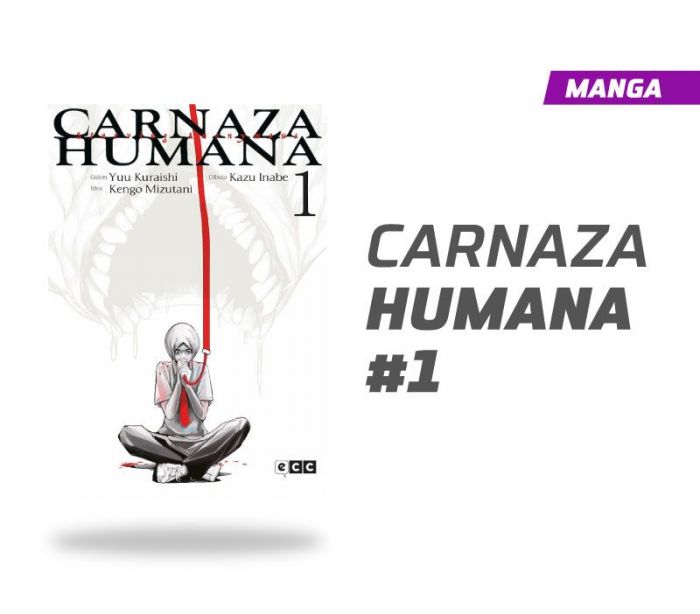 Manga Carnaza Humana número 1, publicado por la editorial Ecc en español, edición en pasta blanda, 208 páginas a blanco y negro.