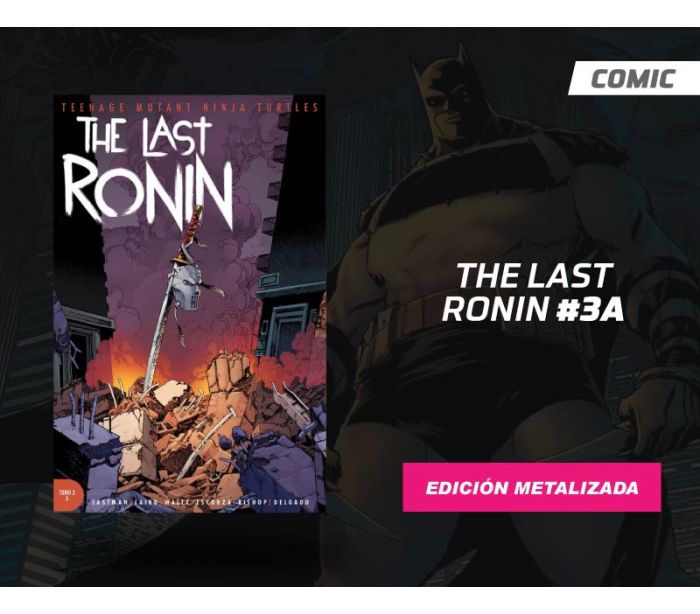 Comic TEENAGE MUTANT NINJA TURTLES THE LAST RONIN NÚMERO 3A, edición especial metalizada pasta blanda, impreso en español por la editorial Kamite, 64 páginas a full color. Trae contenido extra adicional de la edición regular y es de tamaño prestige.