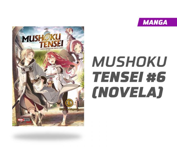 Novela Mushoku Tensei Novels número 6, impreso en español por la editorial Panini México, edición en pasta blanda, 332 páginas a blanco y negro