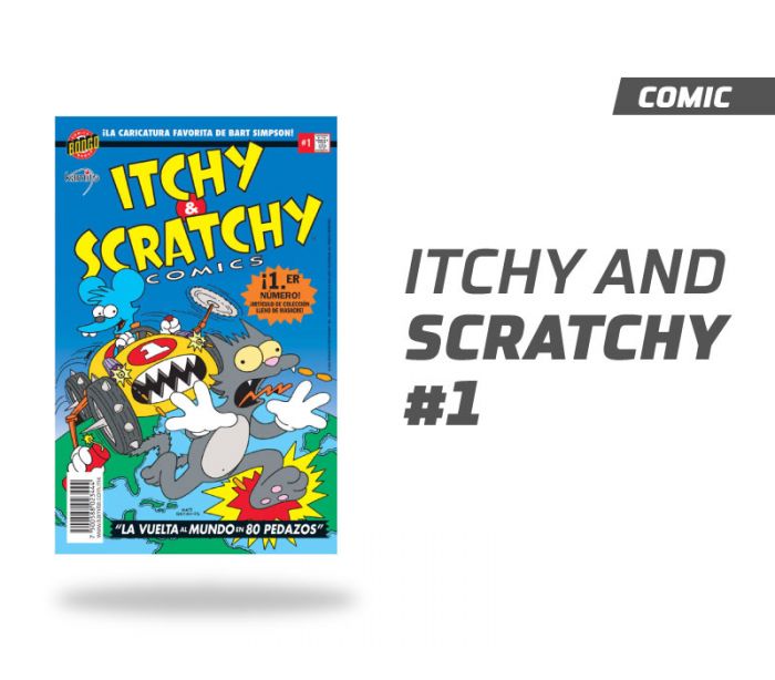Cómic Itchy and Scratchy número 1, edición pasta blanda, impreso en español por la editorial Kamite, 32 páginas a full color.